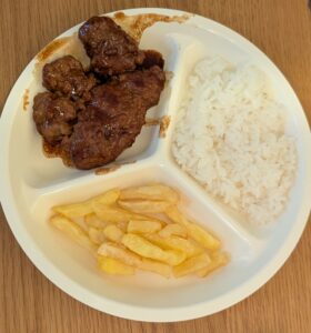 私が休みの日に子供に作った夕食ですが、このように野菜・海藻類がない食事を一気に食べると血糖値スパイクになるので注意しましょう(たまにはいいと思いますが💦)。